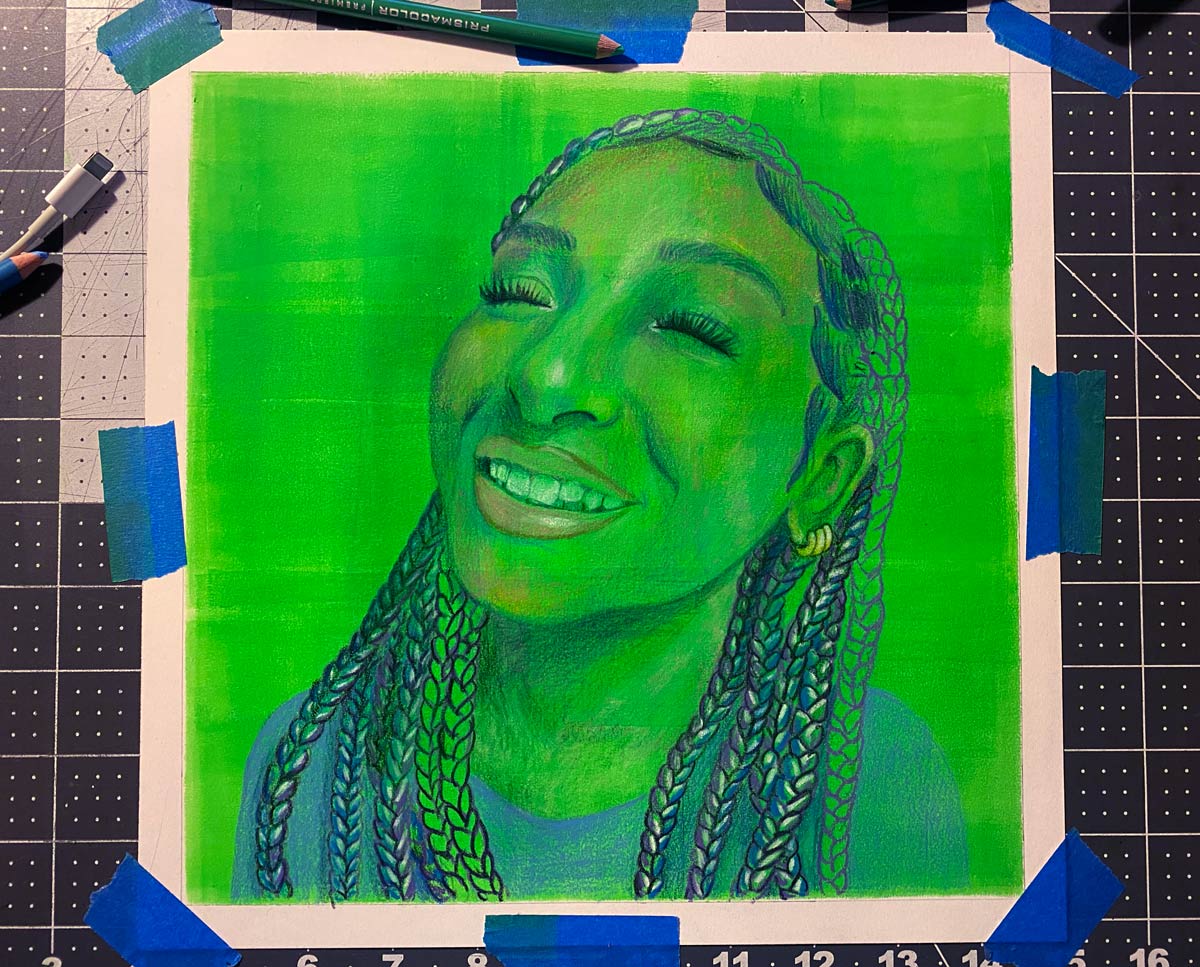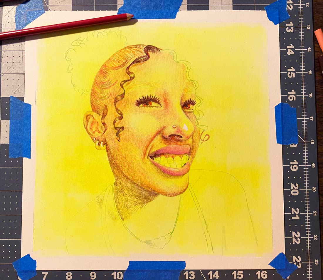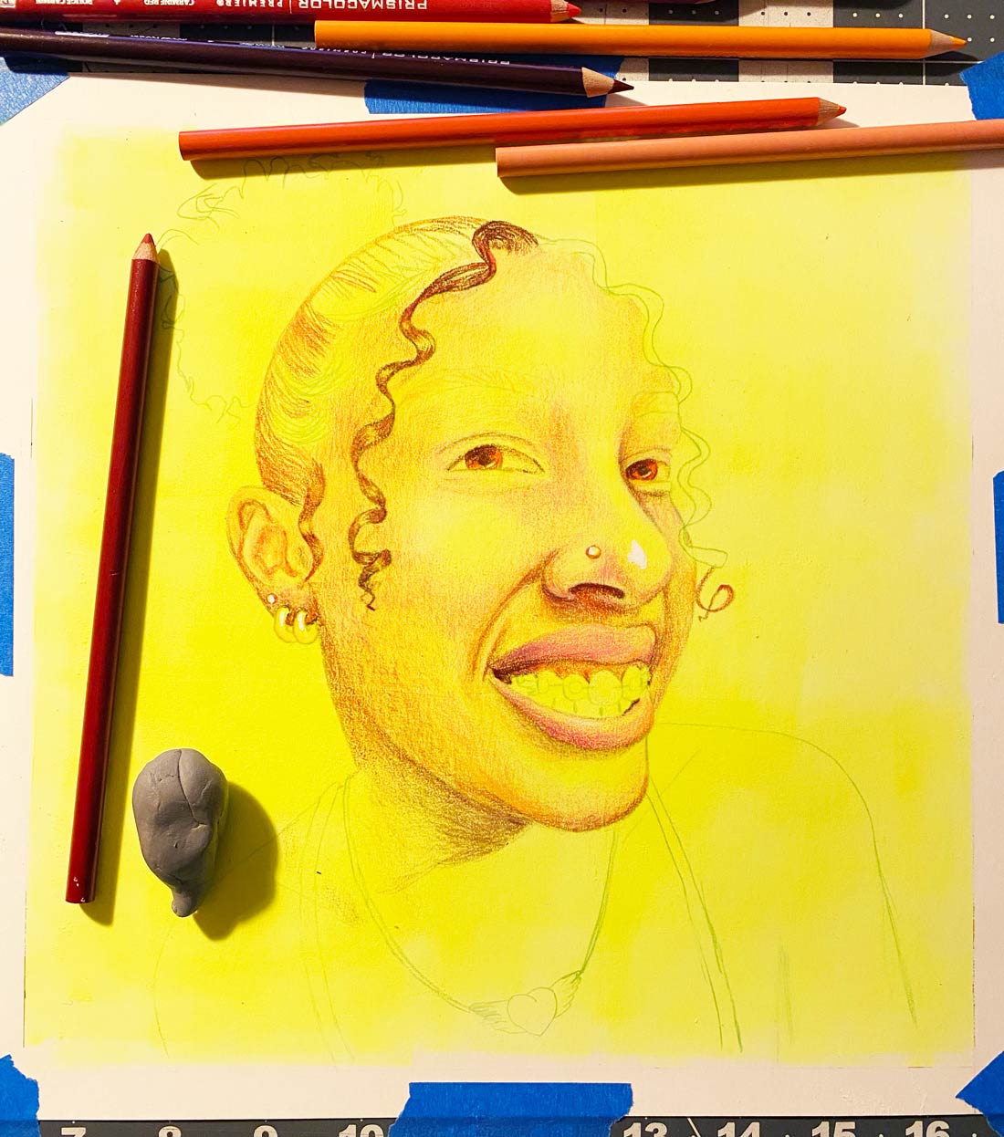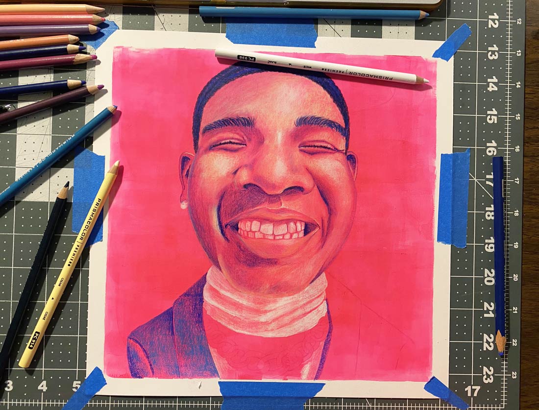 I love my friends. They bring color into my life. In this series of portraits, I wanted to capture their fun personalities in a bright and wacky way. With colored pencils drawn over fluorescent paint, I tried to capture their full on cheesin' smiles and blow up their heads to funny proportions. This project was a great excuse to go back to pencils and paints.