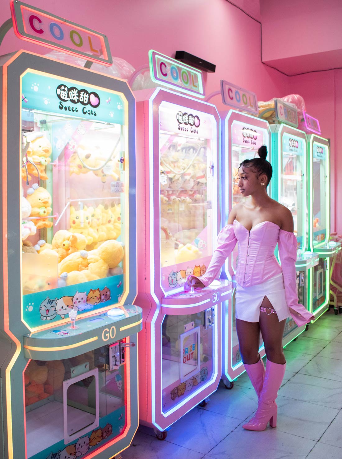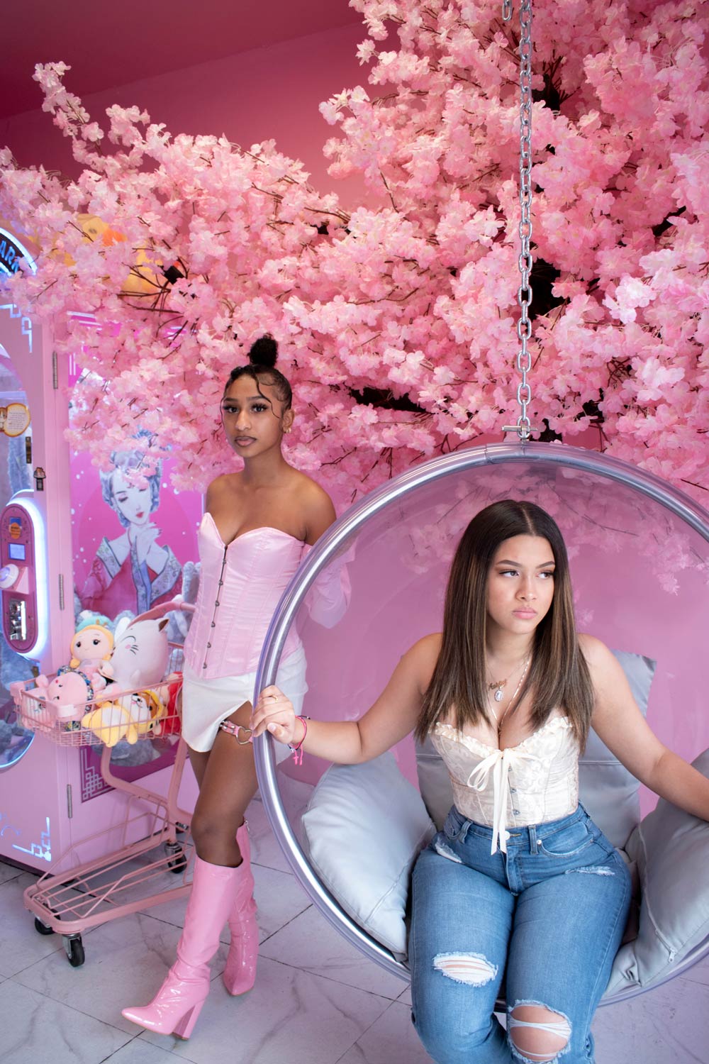 Pinkā¦Pink everywhere! In this project I photographed two young fashionistas in the bright and fun Sweet Cats Cafe & Arcade in Queens, New York. This photoshoot was a freelance project for a student fashion magazine at Executive Education Academy Charter School. While directing the models, dodging the other arcade goers, and sipping on some delicious boba tea every now and then, I tried to create a harmony between the models, the playful arcade setting, and their outfits. The arcade cafe was an amazing setting with dozens of colorful lights, attention‐drawing machines, and all‐pink walls.